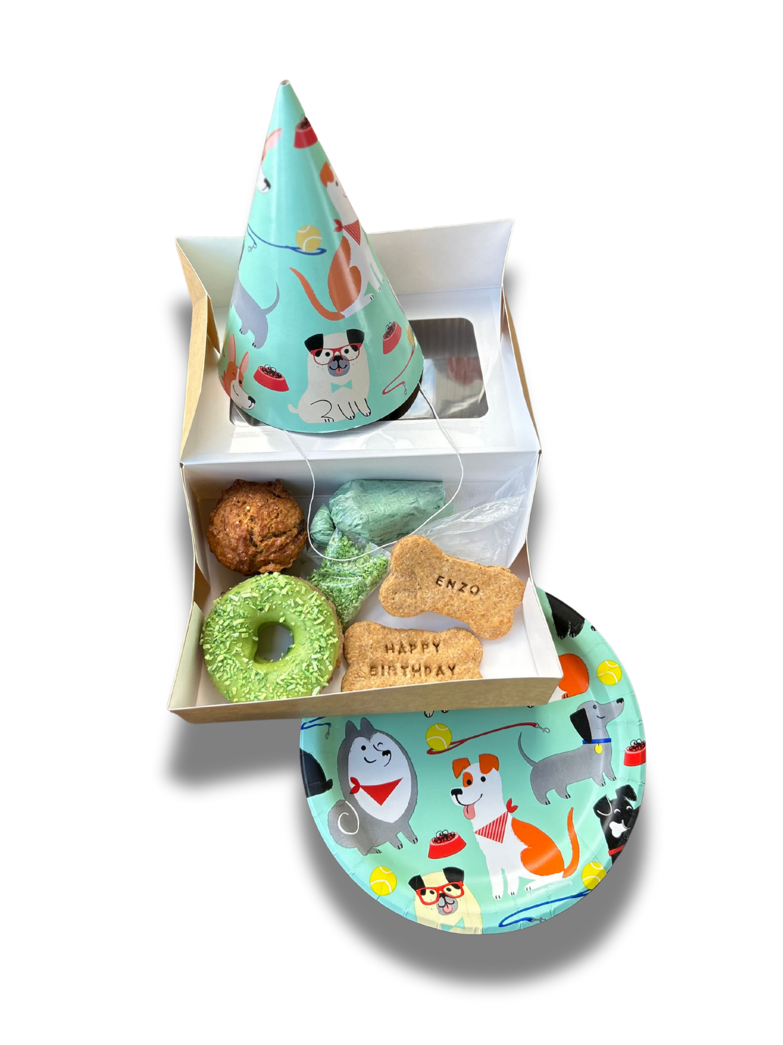 Our Birthday Box is packed with goodies to make their celebration extra special. Inside, you’ll find a selection of our best baked treats, plus some festive extras to really get the paw-ty started.